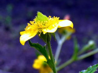 一見ウマノアシガタやキツネノボタンに似た黄色花で長い花柄があります。