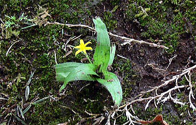 黄色花は径1cm位,1〜2個ずつ上向きに開きます。