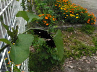 しかし、かなりの落花が見られ、ジャコウアゲハの幼虫に葉を食べられ、茎まで食い切られていました。