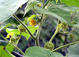 後日、県総合博物館に照会したところ、イチビという不思議な植物と分かりました。