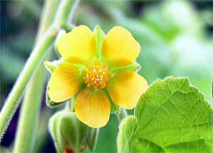 夏から秋に、5弁の黄色花をつける。