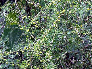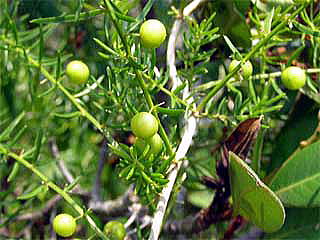 葉は小さく、細枝では膜質,太い枝ではとげになる。