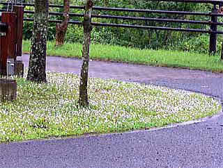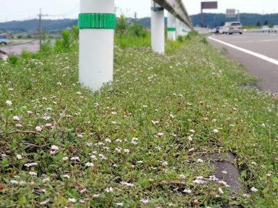 道路路肩のグランドカバーに実際に使われている様子を見るのは初めてでしたので、記録のため、写真を掲載しました(下の3枚の写真)。