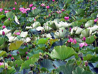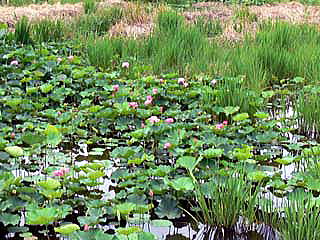 ハスは、既に、佐土原町の県農試入口のレンコン用ハス池のハスと、高鍋町舞鶴城堀の古代ハスと思われるハスをホームページに載せていますが、地元紙 (09.6.26付け、宮崎日日新聞) に、レンコン用ではなく、観賞用の別種として、宮崎市蓮ヶ池のハスが紹介されていましたので、記録のため、撮影に出掛けました。