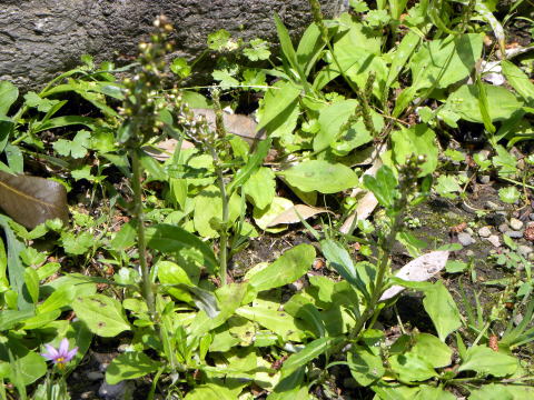 基部のロゼットをなす葉は、幅が広く、大型で目立ち、初夏に出た葉は光沢が少ない。