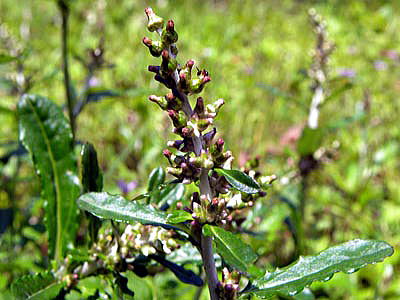 花序は、高く穂状に伸び、葉腋に多数の頭花が固まってつく。頭花は、長さ3〜3.5mm、やた壺形で、中央部から先は、次第に細くなる。