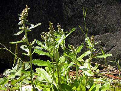 乾いた路傍、空き地、芝地に生える一年草、または越年草。