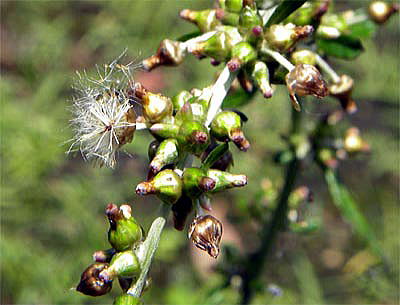 痩果は、長楕円形、長さ約0.4mm、冠毛は長さ約2mmで、痩果から離れやすい。