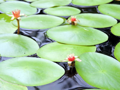 新葉を食用とするジュンサイですが、 都城市早水公園の万葉植物園には、万葉集ゆかりの植物として、ジュンサイが展示栽培してあります。