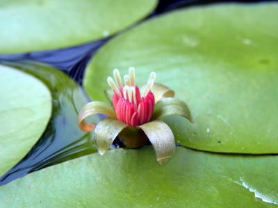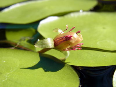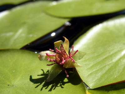 ジュンサイの花は、雄蘂よりも雌蘂が先熟し、2日間開花するといいます。
