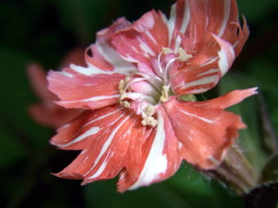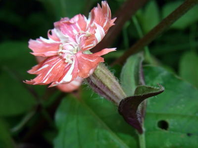 花は夏,径4cm位で深紅色,ときに白花がある。がくは長いこん棒状で5裂,花弁は5枚で平開し,下に花爪がある。