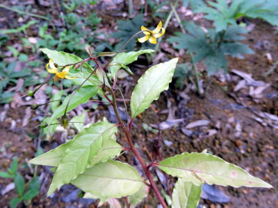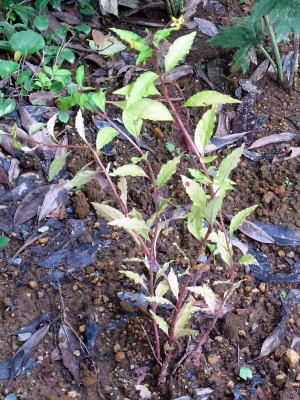 草丈30cmくらい、紫褐色を帯びた茎は角ばり、ほっそりとした印象の植物です。