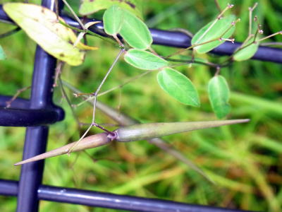 細長いつるを遊歩道の鉄柵に巻き付けていましたが、見過してしまいそうなほっそりとした印象の植物です。