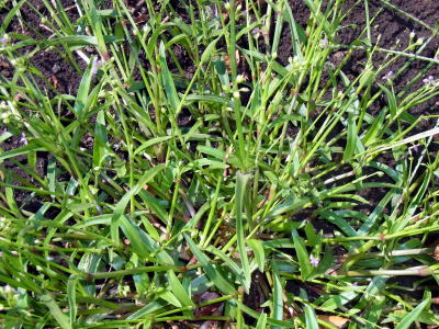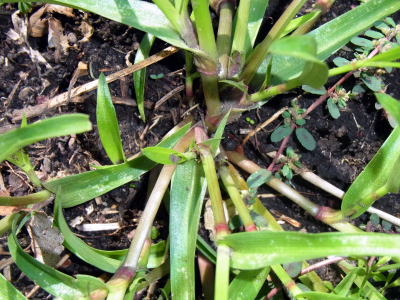 畑の畦道で、茎の株が地面を這ったイボクサによく似た植物を数株見かけました。