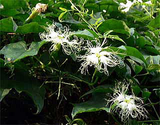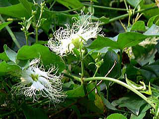 なお、08年9月、生駒高原近くの道路の上に、我が物顔に蔓を伸ばしているキカラスウリを撮影しました。