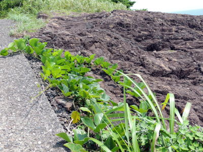 海岸の岩場の上に横たわるような格好で、茎を伸ばして生えていました。