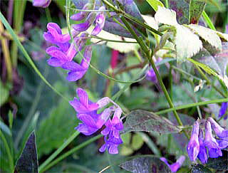 和名の南天萩は、ナンテンの葉に似ていることを意味する。別名フタバハギは、2小葉だから二葉萩。漢名歪頭菜。