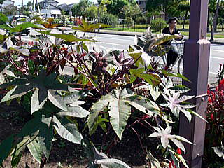 宮崎市権現北通りを車で走行中、普段見かけない特徴のある植物を見かけました。