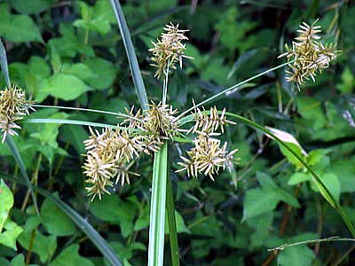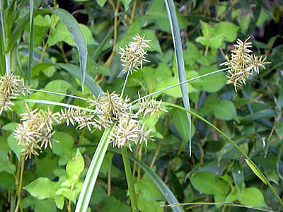 形状は普通のカヤツリグサと変わりませんが、大きく腕を広げたような花序(葉状の苞と思われます。)には、びっくりさせられました。