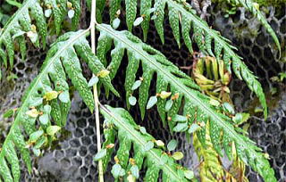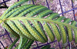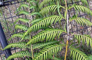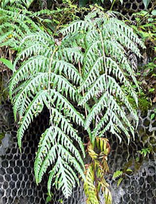 ハチジョウカグマと思って撮ったのですが、県総合博物館に照会したところ、写真でははっきりしないが、コモチシダではないかということでした。
