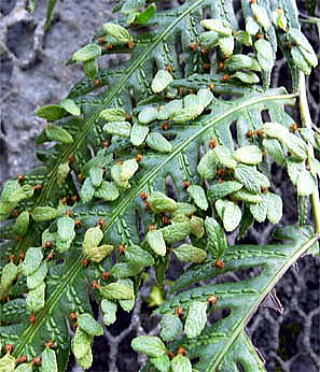 コモチシダは、本州の暖帯、四国、九州に分布し、山麓の斜面や崖地に生育する常緑の大型のシダです。