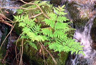山菜で有名なゼンマイが、渓流の流れにも耐えられるように進化した種(しゅ)といいます。