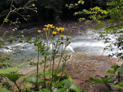 秋の加江田渓谷は、いたるところでツワブキの花が見られます。