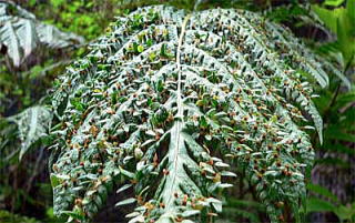 日当たりのよい崖や斜面に垂れ下がっている特徴ある大型のシダです。