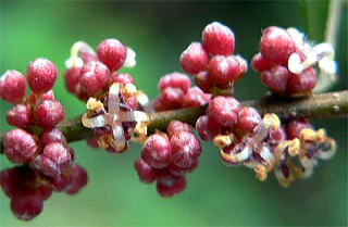 花を撮影するつもりで何度か行きましたが、花は早春、葉が出る前に、前年枝の落葉した葉えきに、集散花序につくといいますので、撮影した写真は、蕾もしくは花の終わった後ではないでしょうか。