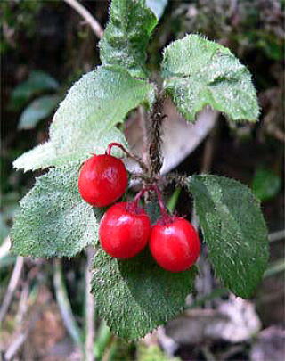 花は、初夏に小さな白花をつけますが、目立ちません。 果実は、冬に紅熟して、翌春まで残ります。