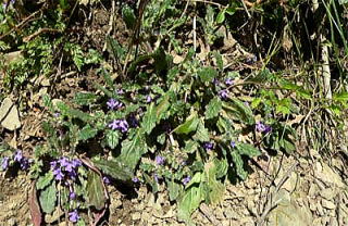 各地の道端、野原など人里に多い多年草で、茎は地面を這い、四方に広がります。