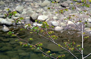山地の林内や川沿いに生える落葉小低木とされていますが、まさに渓谷沿いに数か所で見かけました。