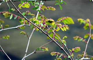 小枝を水平に出し、その上に葉を互生するので、羽状複葉のように見えますが、単葉互生です。