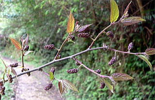 花は春、若枝の葉腋ごとに一個の花序をのばします。