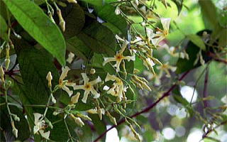 花は、クチナシの花(花径6-7p)に似ていますが、大きさは全く違い、花径2〜3pです。