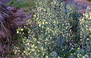 収穫せずに栽培を続けると巨大になった花序に多数の黄色やクリーム色の花をつけます。
