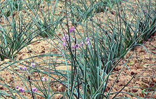 軟らかく、冬になっても枯れないところが、冬地上部が枯れるヤマラッキョウと違う点です。