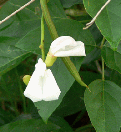 白い花を咲かせているナタマメを観察しました。
