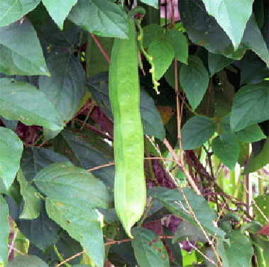 豆果は、長さ30cm,幅5cm位,10〜14個の紅色または白色の種子を生じる。若い豆果は食用とされる。