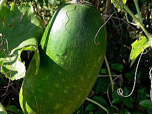液果は、長さ30〜50cmになり,若いときは軟毛がある。 煮て食用,また種子は、生薬の冬瓜子である。