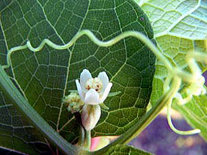 花は、小形で白色。単性で同株につく。