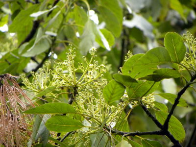 見上げるような高木ですので、上手く花を撮影するのは至難のわざでしたが、とりあえず、その時撮影した写真を追加しておきます(4段目以降の3枚の写真)。