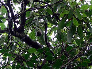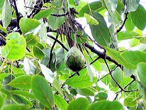 見上げると、深いグリーン色をした果実が、葉陰に数個、見え隠れしています。
