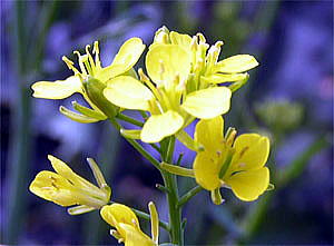 ダイコンやナタネの花に似ていますが、草丈や大きな葉の割には、比較的小さく、楚々とした雰囲気の薄黄色の花です。