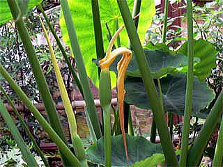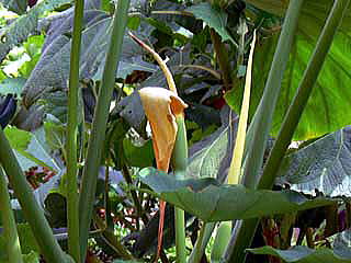 何せ、『サトイモの花が咲いた!(08.9.3付け、宮崎日日新聞 『歩廊欄』)』 と、ニュースになるほど、花は珍しいことのようです。