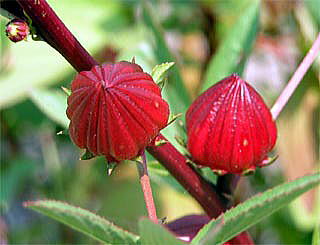 花後は、果実を包む鮮やかな紅紫色の萼(がく)が厚く肥大し、成熟した萼は多汁質で、クエン酸や酒石酸を多く含み、乾燥させたものがハイビスカスティーの原料となる。
