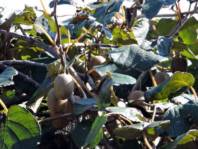 落葉つる性のサルナシ、ウラジロマタタビ、マタタビと同科同属のシナサルナシの改良種で、栽培を始めてから30年余になるとのことでした。