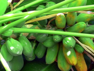 果実は、だ円形ないし卵球形。果肉に消化酵素のパパインを含み,肉類の消化によい。