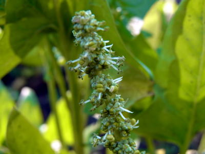伸びた穂先にたくさんの雄花群が花を咲かせていました。 花といっても、黄緑色を帯びた花弁のない花です。