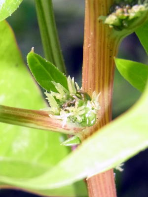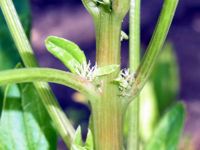 ホウレンソウは雌雄異株で、雌花は株元につくといいます。